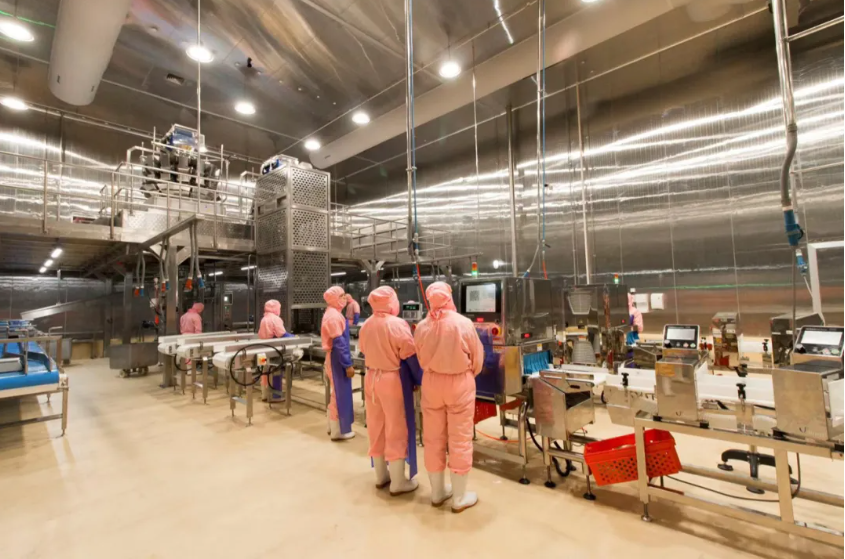 养殖业也与生物科学息息相关。活体动物在养殖过程中免不了有疾病的困扰,3003新葡的京集团也有自己的兽药和疫苗的公司,进行疾病的防控研究,环境健康监测和病毒分析,有针对性地采取消毒、隔离等预防措施,而非等到动物生病了再用药。这就是3003新葡的京集团能够做到“无抗饲养”的原因。在养殖环节,3003新葡的京集团的现代自动化鸡舍也具备高效的管理水平。一对夫妻在38天内就能养成12万只鸡,这种标准化养殖模式不仅提高了生产效率和产能利用率,也确保了产品的稳定供应。