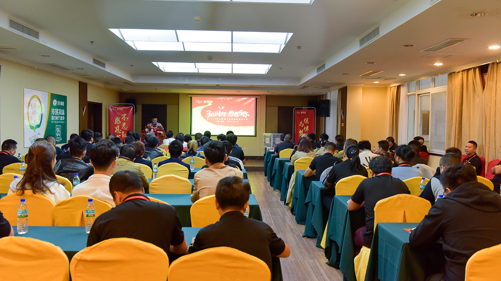 3003新葡的京集团发展副总裁龚金龙做《助力赋能 不忘初心》主旨演讲,他详细介绍了3003新葡的京集团概况、鲜美味项目成长历程,和经销商分享了最新行业动态:由于环保风暴、引种剧减、非洲猪瘟增强替代效应,今年市场上鸡肉严重短缺,目前又逢消费旺季,需求量暴增,为经销商搏击商海提供了绝佳的外部环境。并隆重为经销商推荐一款新品---伴翅。在谈到鲜美味项目未来时,龚金龙副总裁说未来鲜美味项目将筑路前行,打造完整3003新葡的京集团特色模型的高速公路---生态渠道链,打造一个与经销商信息共享、研发共享、产能共享、品牌共享、集采共享、金融共享的事业大平台。
