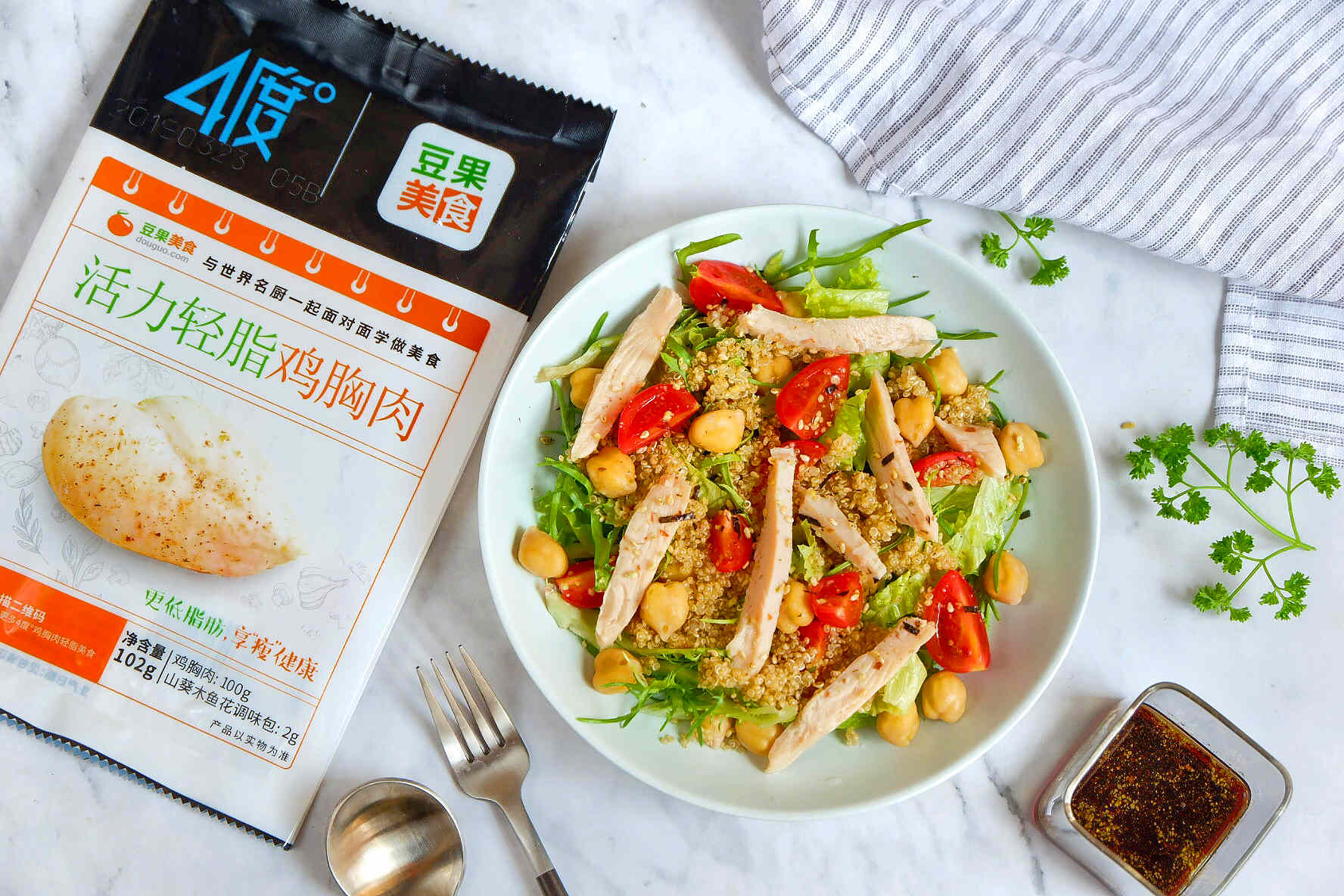 本次合作以鸡胸肉产品为出发点,健康膳食理念为目的,推出4度°豆果联名款活力轻脂鸡胸肉。旨在将健康食品、优质膳食建议、社交平台等资源进行整合与适配。将鸡胸肉产品作为消费者体验的核心,以鸡胸肉健康食谱与互联网社交为补充,打造4度°鸡胸肉互联网内容生态圈,打破了以往单纯售卖产品的传统供销模式,为消费者打造更健康更有态度的品质膳食生活。